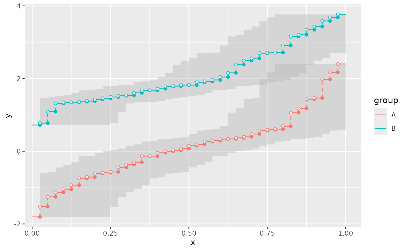 geom_eqf() computes the empirical quantile function of a sample and renders