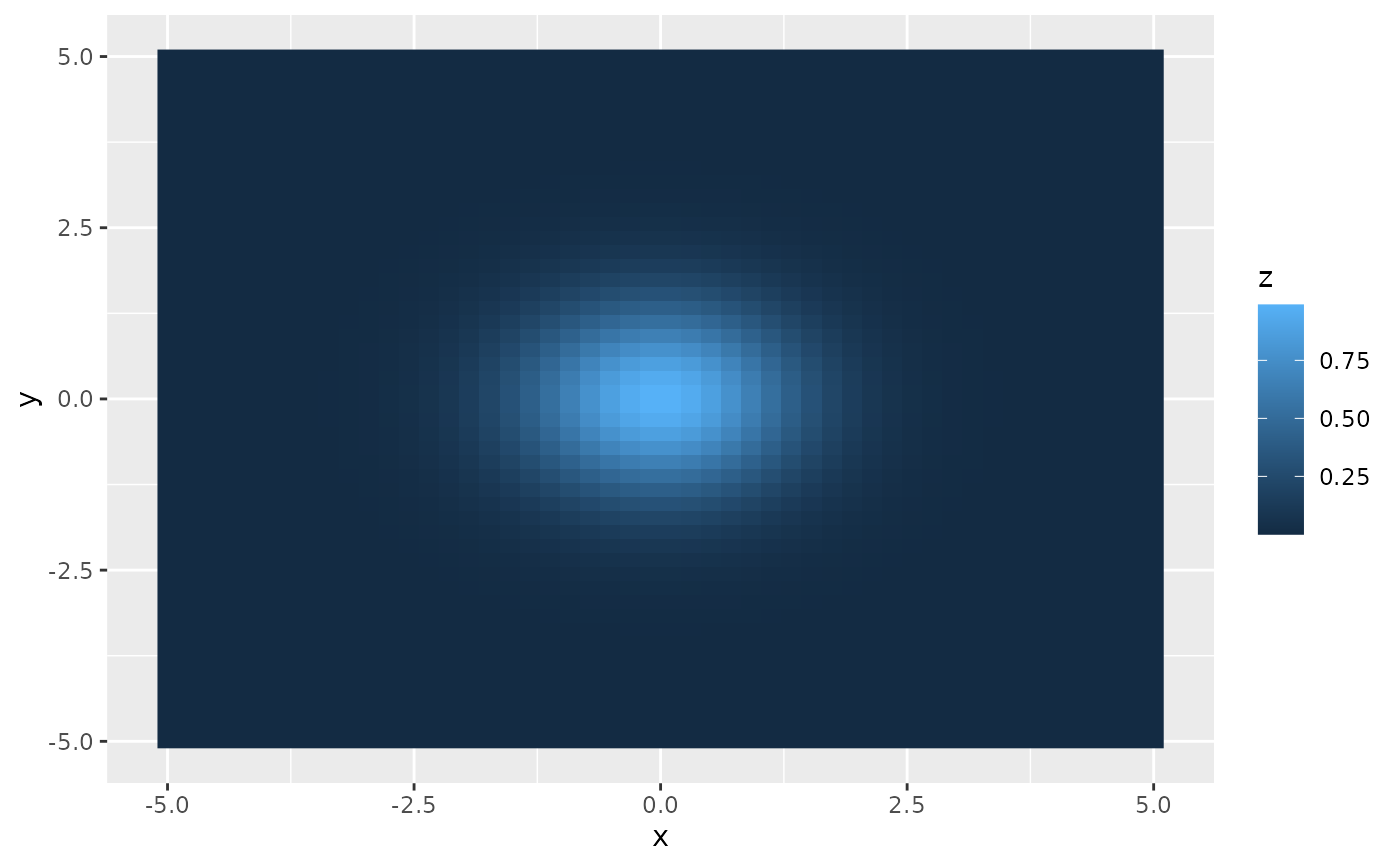 geom_function_2d_1d(fun = f_gaussian, xlim = c(-5, 5), ylim = c(-5, 5))