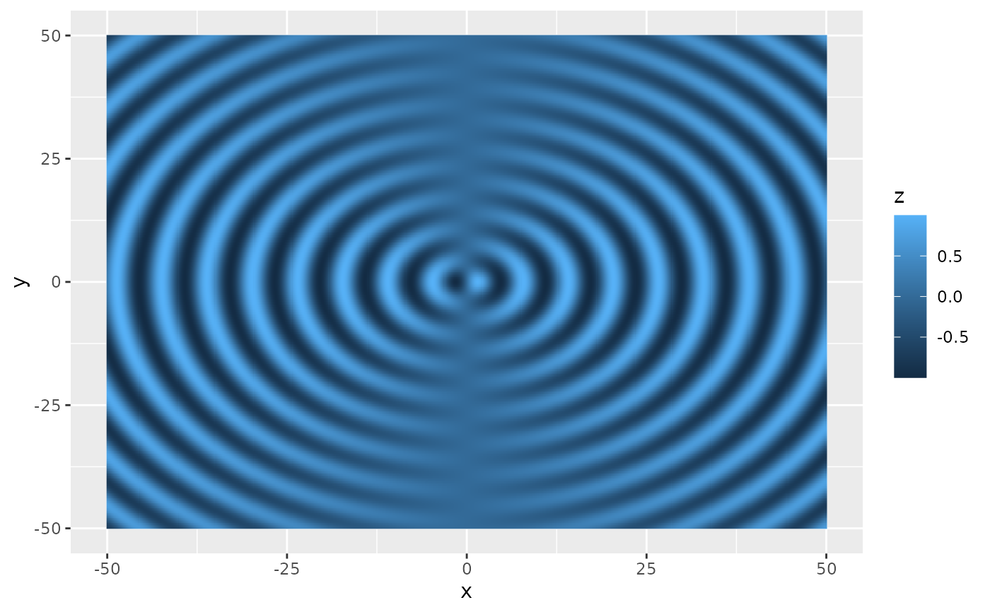 geom_function_2d_1d(fun = f_radial_wave, xlim = c(-50, 50), ylim = c(-50, 50), n = 100)