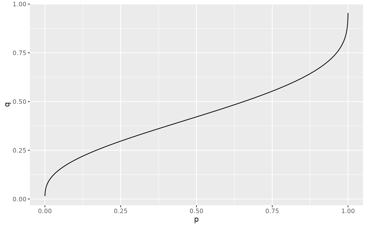 fun. Defaults to 101. Points are placed at Chebyshev nodes of the first kind on $(0, 1)$, which cluster near 0 and 1 where quantile functions are typically most curved, and never include the exact endpoints (avoiding \(\pm\infty\) for unbounded distributions).- args