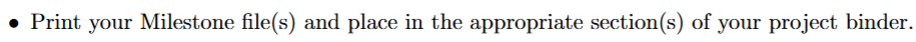 This milestone sets up your binder and makes sure you have acceptable data.