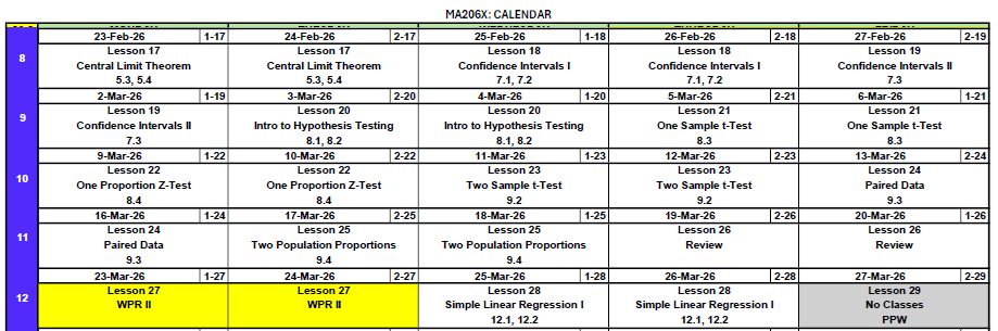 - WebAssign 4.1–4.2 - Due before Lesson 13