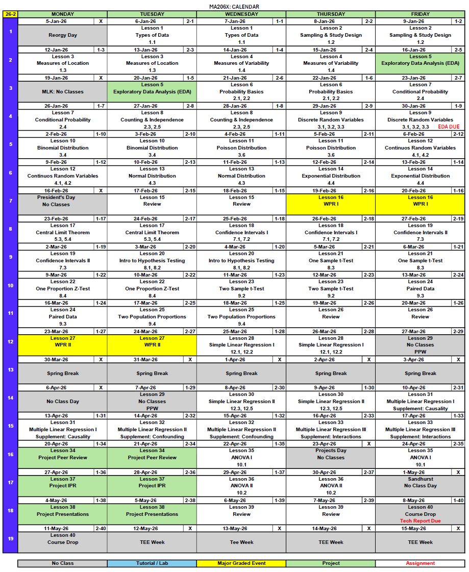 - WebAssign 2.1-2.2 - Due before Lesson 7