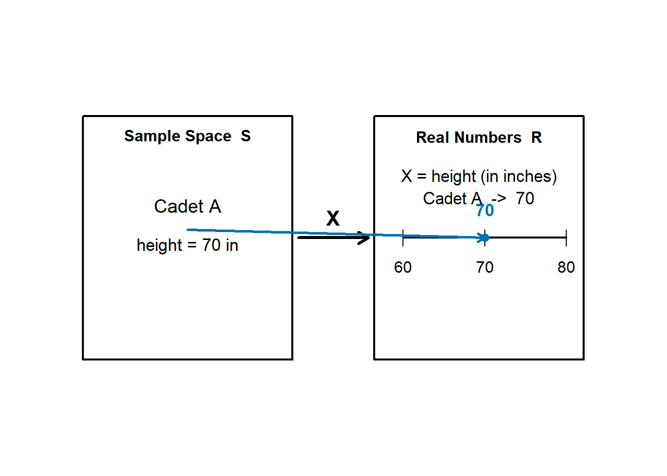 Select a cadet at random and let \(X = \text{height (in inches) of the selected cadet}.\)